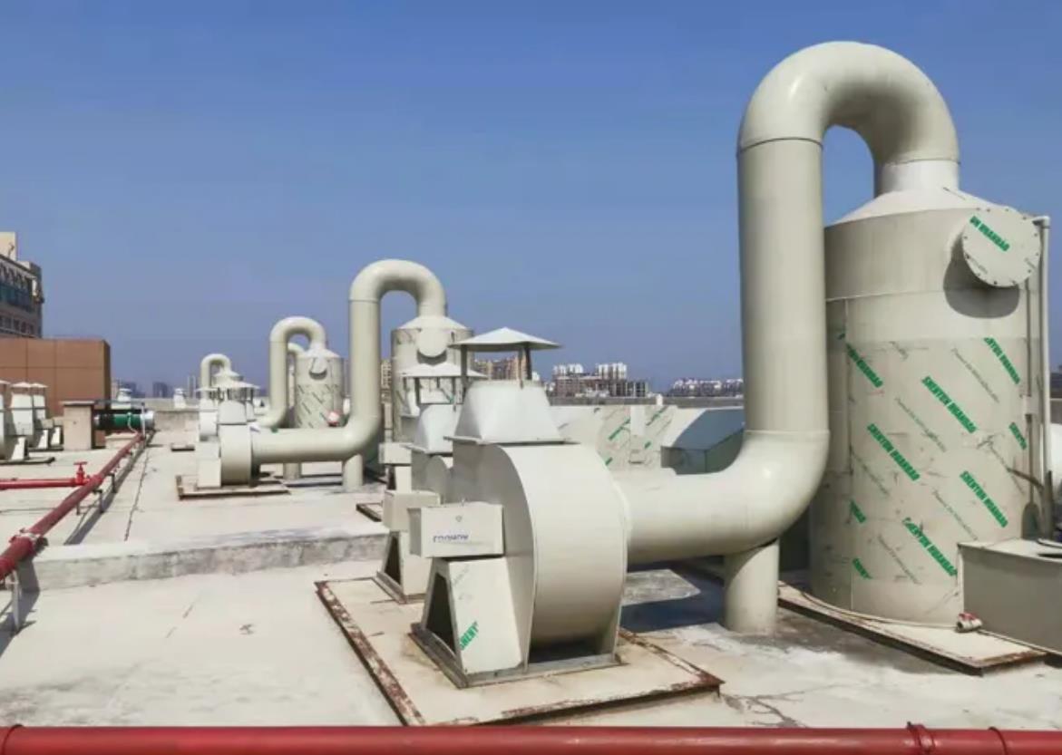 废气从工业过程中产生,通常包含粉尘、气溶胶、有机化合物、酸性气体等污染物。这些废气被引入废气塔的底部。
